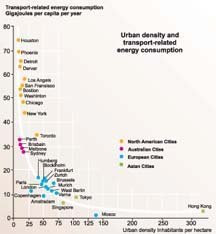 The adoption of faster modes of transport has changed profoundly the spatial organisation of cities. The increase in average speed of a city's transport system calls for more space. The result is urban sprawl and reduced density. Dominant transport modes are, therefore, the determinants of urban structures. The increase in distance covered due to increased speed of travel and urban sprawl leads to an increase in energy consumption.