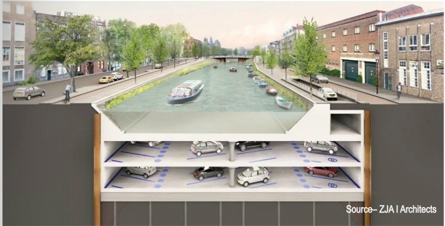 This innovation however, comes years after the city built the Albert Cape Underwater Garage right under the Amsterdam canal back in 2018 for parking 600 cars, located on two levels under the Berenwetering Canal, intended primarily for use by permit holders. There is also parking for 60 bicycles in the garage. The idea behind this is that permit holders use their bike to drive to the garage to pick up their car.