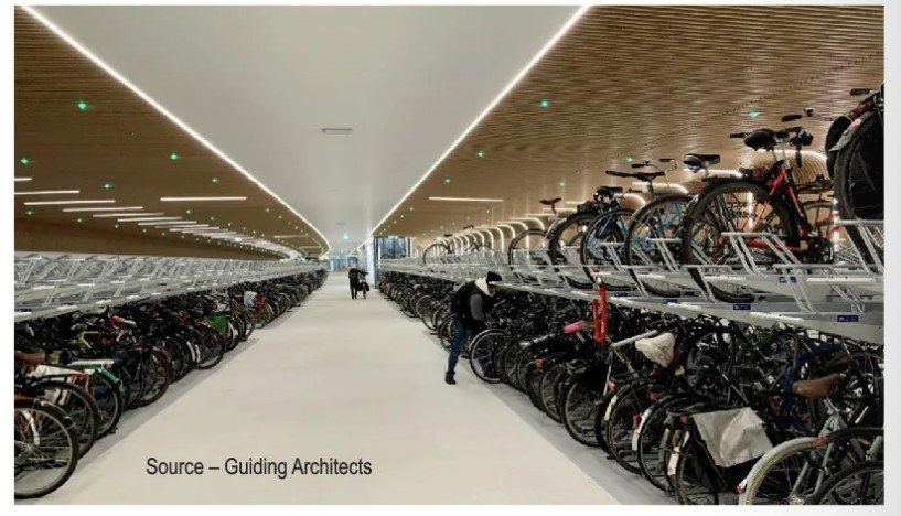 The new underwater garage makes an end to the messy and overflowing bicycle parking facilities in front of the Amsterdam central station, says a report. It’s tucked away out of sight beneath the clear waters and pleasure boats. Bikes can be parked freely for 24 hours and then at a cost of €1.35 for the next 24 hours. The bicycle detection technology uses optic sensors and a smart software algorithm that is able to simultaneously detect up to 20 bicycle parking slots. The system will detect available spaces. Green and red lights are shown to indicate if parking spaces are available or not.